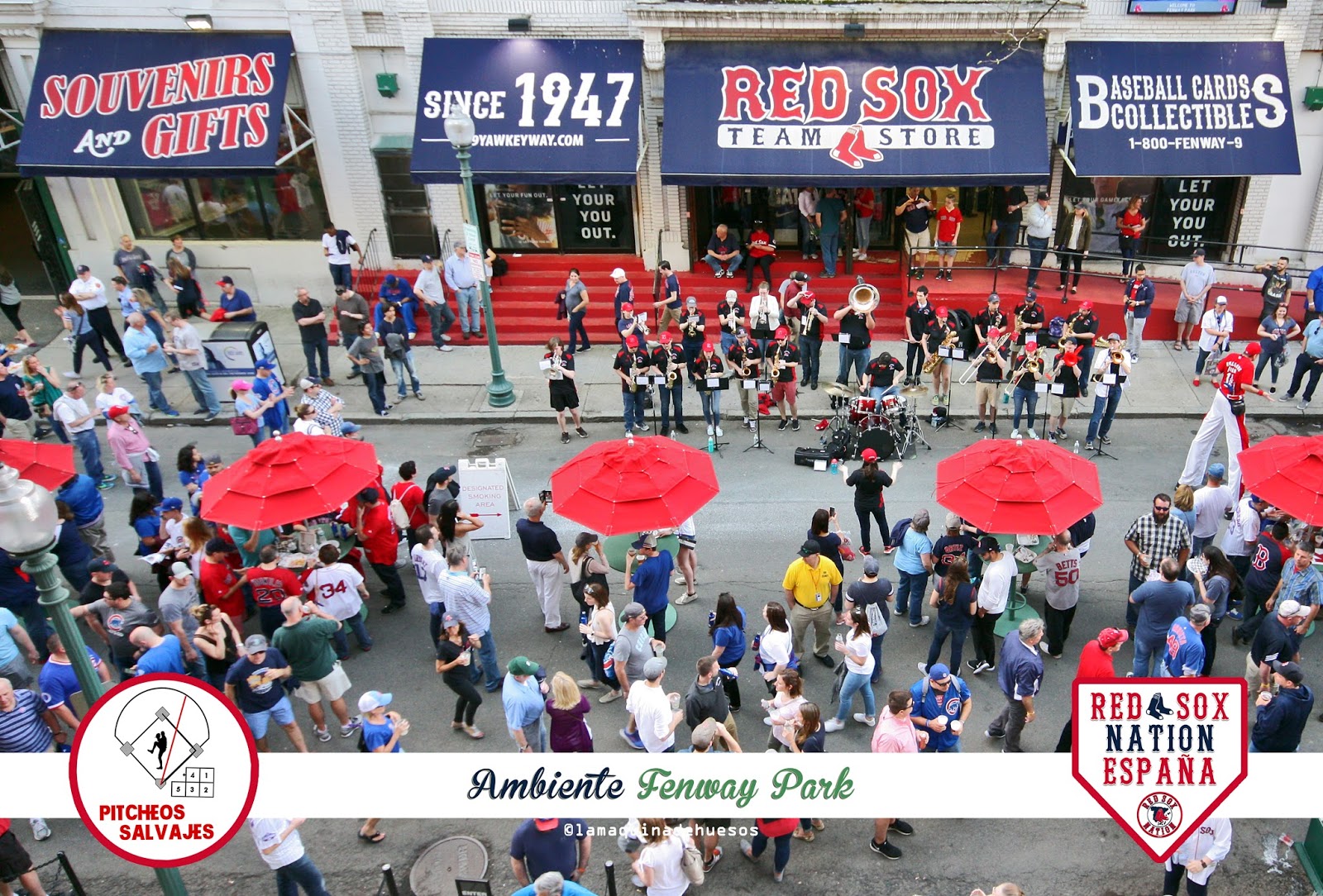 Coges el T, te bajas en Kenmore, sales a la calle, «tickets sale», «tickets sale» es lo primero que escuchas luego «programa a un dólar, un dólar» y gente, mucha gente. Andas un poco más y estás en el Puente de Big Papi, más programas a un dólar, un coche que pide paso al parking y ya lo hueles, has pasado esta mañana para el tour pero lo hueles, el verde de Fenway Park. Las terrazas están abarrotadas de gente comiendo, colas para entrar en Game On, la primera calle que ves es Lansdowne St, el puesto de camisetas, de salchichas, de ropa, la gente yendo y viniendo, la cola para los que no tienen ticket y quieren comprarlo ese mismo día de partido en la valla «Game Day Ticket Sales», otra cola más adelante en el Bleacher Bar y casi al final de la calle enfrente del House Of Blues, una señora con una mesa de camping que tiene todo tipo de memorabilia, cartas, cromos, monedas de casino. Continúas unos pasos dejando la Lansdowne St a la izquierda, pasas el Game On y puedes ver el letrero de la Yawkey Way St. A la derecha el Boston Beer Works, los números retirados y al final también se distingue la Yawkey Way T. A la izquierda te sumerges en la Yawkey Way St, las tiendas oficiales, puestos de comida y bebida por ambos lados, la seguridad y ya dentro de la calle, fiesta, una banda tocando, Wally haciéndose fotos con los chavales más jóvenes, bueno y no tan jóvenes, más puestos de comida y bebida, música, Brian el zancudo le tira una bola a un chaval y éste se la devuelve al guante, la gente aplaude. Ahora hace el gesto de lanzar la bola a un señor de los Cubs pero le dice: “No, Cubs no”. La gente sonríe y aplaude. Fiesta, música y béisbol. Llegas al final de la calle, una tienda, un puesto de salchichas y la Van Ness St mucho más calmada que el resto. En esta calle es donde suelen aparcar los coches de los jugadores, ves seguridad pero también al final de la calle una cola de gente donde las estatuas de los TeamMates, es la Gate B.