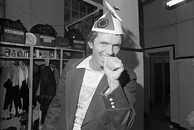| Lee haciendo el «indio» en el clubhouse. |