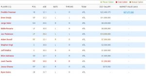 Los cuatro jardineros que trajeron en el cierre de mercado acaban contrato tras darles a los Braves lo que pedían, rendimiento inmediato para meterse en playoffs y, como plus, el título en este épico final de 2021. Y vaya si lo hicieron. Gran rendimiento de los 4. Tanto Joc Pederson como Adam Duvall tenían opción mutua de club y jugador. El primero de 10 millones con un costoso buyout de 2, cantidad que deberán pagar los Braves a Pederson al declinar el jugador la opción. El segundo tenía opción por 7 millones con 3 de buyout ya que, al ser elegible en arbitraje, su salario será superior al rondar los 9 millones, más el buyout cobrado. Y Eddie Rosario y Jorge Soler también acaban contrato con unos playoffs inmensos en el haber del primero y una mejoría en su paciencia del segundo también palpable. Pero esto no es lo más importante para Anthopoulos. Freddie Freeman, la cara de la franquicia y MVP en 2020, acaba contrato y con 32 años aspira a firmar su último gran contrato. Ojalá lo sea con el uniforme Brave. La apuesta cara de Drew Smyly no ha salido bien y dudo que vuelva a ganar esos 11 millones ganados este año. Del resto, pocos nombres importantes, que no es poca cosa. La opción por Josh Tomlin también ha sido desestimada pagándole un buyout de 250.000. Por último, se ha mandado a waivers a Grant Dayton, Terrance Gore, Travis Demeritte y Alan Rangel. Su primera adquisición ha sido la contratación del receptor Manny Piña, que servirá de backup para el, a priori, titular Travis D’Arnaud. Un receptor bastante aceptable en la parcela defensiva y que aporta algo de poder. Un buen complemento en un puesto bastante escaso en esta agencia libre.