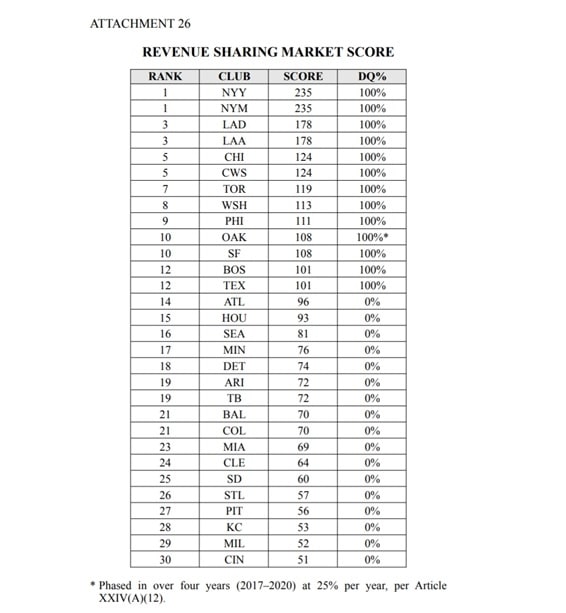 El revenue sharing es un sistema que no creo que tenga que ser modificado en su base: porcentaje, cantidades, sistema de reparto, penalizaciones, etc. Lo que debe cambiar es el control que se hace de ese sistema. Hay que imponer unos límites sobre como se mueve ese dinero. Por ejemplo, que el 75% del dinero obtenido en el revenue share se debe dedicar a los jugadores de MLB. Según Forbes, en 2019 los Rays recibieron 46 millones de dólares de transferencia neta (la diferencia entre lo que aportaron y lo que recibieron) de este sistema. Matemáticas rápidas, tendrían que gastar 34,5MM de los obtenidos bajo este sistema en jugadores MLB. El payroll de los Rays fue de 65MM durante la temporada 2019, por tanto, los dueños solo tendrían que invertir 30,5MM de dinero propio para mantener ese equipo. No parece descabellado para milmillonarios, supongo.