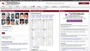 Una auténtica enciclopedia de la MLB…y de las ligas menores, la KBO, la NPB, etc… Si quieres buscar cualquier jugador de la historia, cualquier roster histórico, sus estadísticas divididas por menores, extranjeras o sólo MLB, clasificaciones históricas de cada división, premios individuales, rondas finales, estadísticas de cualquier tipo, ésta es tu página referencia, como bien indica su denominación. Además, tiene una utilidad bastante interesante como una herramienta (https://www.baseball-reference.com/friv/link_players.cgi) para linkar todos los jugadores que citas en tus escritos a su respectiva página de esta web.