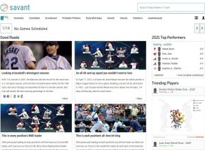 También conocida como Statcast, esta página web es propiedad de la MLB y es la panacea de cualquier obseso de la sabermetria y la estadística avanzada. En esta completísima web de análisis de jugadores puedes entrar a valorar aspectos como el rendimiento de cada jugador con respecto al tipo de bola lanzada, el rendimiento de cada lanzador con cada uno de sus lanzamientos de su repertorio, sus métricas de lanzamiento (tales como movimientos horizontales o verticales de cada bola, localización de sus lanzamientos), sus métricas de bateo (velocidades de salida, ángulo de salida, % de barrels y muchas comparativas de diferentes tipos, incluyendo muchas comparativas anuales. Una herramienta muy avanzada para aficionados al béisbol que quieran profundizar mucho sobre el deporte.